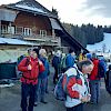 Die Bahn führte uns über verschiedene Anreiseorte nach Langnau. Beim Treffpunkt Bahnhof Langnau fanden sich 33 Teilnehmer ein. Nach kurzem Fussweg erreichten wir das Restaurant Hirschen, wo uns Kaffee und Gipfeli erwarten. Beim Chüechlihus konnten wir noch den Stamm der mächtigsten Dürsrütitanne sehen, welche 1974 nach einem Blitzschlag gefällt wurde. Masse: 57.35 Meter, Durchmesse 158 cm, Alter 377 Jahre alt. Vom Bärenplatz führte uns die Oberstrasse in den Kehr. Jetzt begann der 200m Höhendifferenz Anstieg über Unter-Dürsrüti, Mittel- und Ober-Dürsrüti, zum Dürsrütiwald. Es öffnete uns eine wunderbare Rundsicht über das obere Emmental. Die Schrattenfluh mit dem Schibegütsch, der Hohgant und der Sigriswilergrat in der weiteren