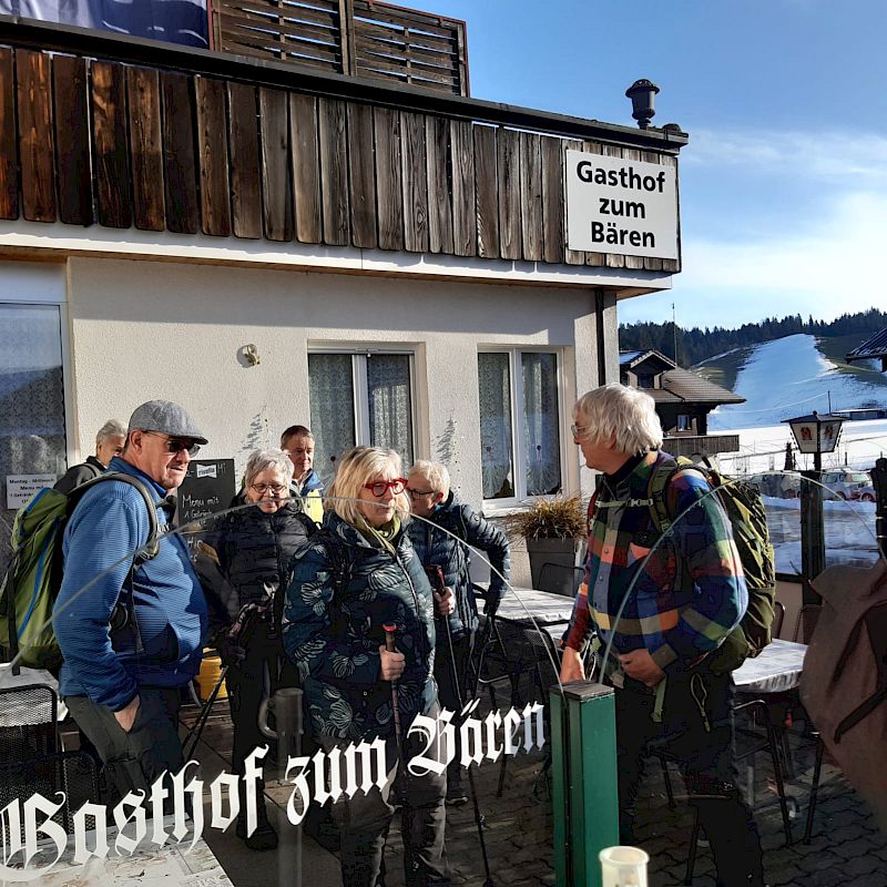 Mit dem RE von Bern nach Zweisimmen begann unsere Reise. Ab Spiez war die Wandergruppe PV BLS unter der Wanderleitung von Koni Schüpbach komplett. Ab Zweisimmen führte uns der Privatbus in 20 Minuten ins Sparenmoos hoch. Im MUMA Beizli wartete das Start Kaffee mit Gipfeli auf uns. Unsere Wanderung führte uns, bei bedecktem und verhangenem Wetter über die Alphütte Hüsliberg mit Sicht ins Saaneland und den Wildstrubel. Auf dem gut angelegten Winterwanderweg ins Tolmoos wurden wir von einem leichten «Schneeschtürmli» begrüsst. Im Tolmoos bei ein paar Schneeflocken entschlossen wir uns, unsere Wanderung über die Site Alp ins Sparenmoos fortzusetzen. Im MUMA Beizli erwarteten uns Dominique und Bruno Kohler mit einem feinen Fondue. Der Privatbus führte uns, jetzt bei Sonnenschein, zurück nach Zweisimmen. Nach einem Schlusstrunk ging es mit dem RE wieder zurück in heimische Gefilde.