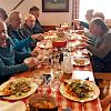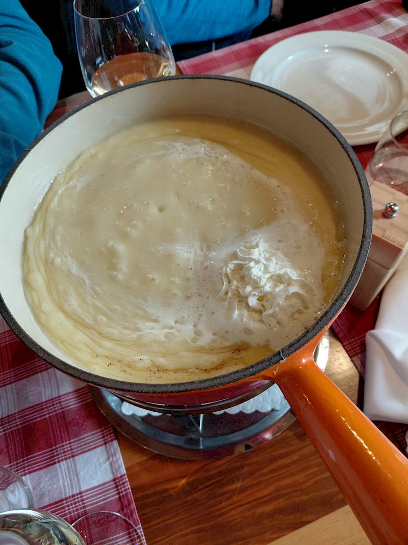 An der Talstation wurden wir von Mike Ittner und Carolina Frank, mit ihrem Team im ehrwürdigen Wirtshaus zur Treib herzlich willkommen geheissen. Nach dem Apero durften wir uns an die mit viel Liebe hergerichteten Tische zum Mittagessen setzen. Urner-Heu Suppe, Fleischkäse vom Thurgauer Mostschwein im Blumen-Topf serviert, mit Salat und Dessert, war unser Menü, das wir genussvoll genossen.